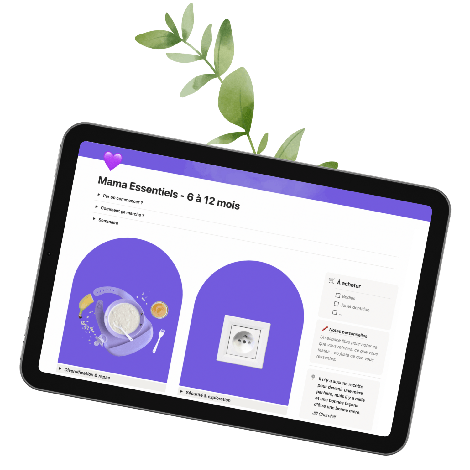 Le Kit Mama Essentiels est hébergé sur Notion, un espace d’organisation simple et intuitif (et 100 % gratuit).