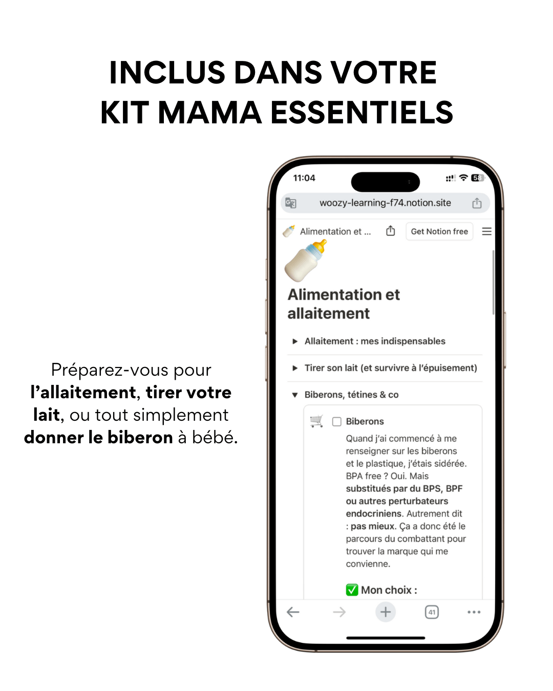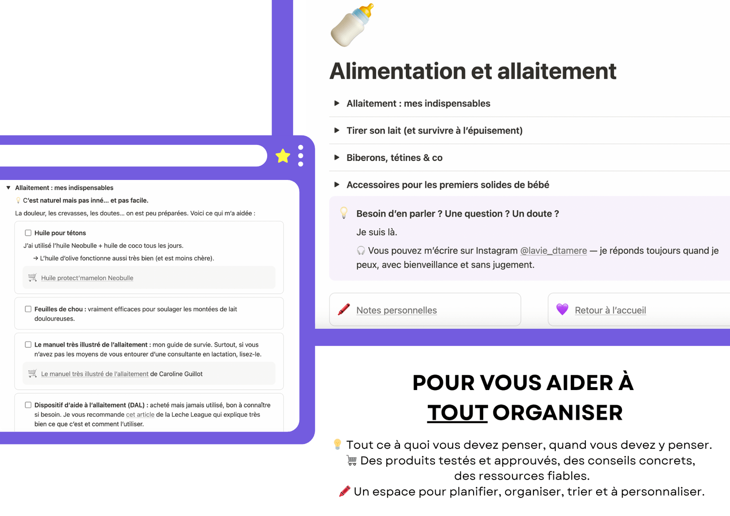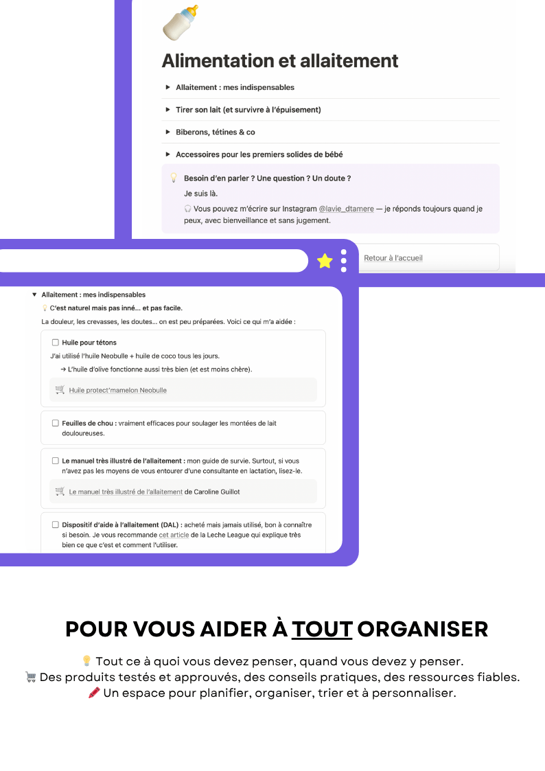 Le Kit Mama Essentiels est hébergé sur Notion, un espace d’organisation simple et intuitif (et 100 % gratuit).