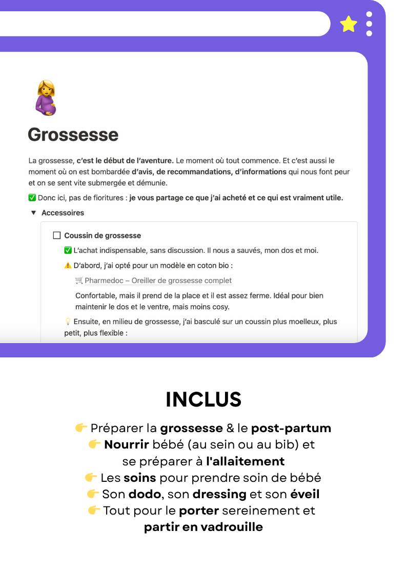 Tout est prêt pour préparer chaque étape de votre maternité, pas à pas, sans stress, de la grossesse aux 6 mois de bébé.