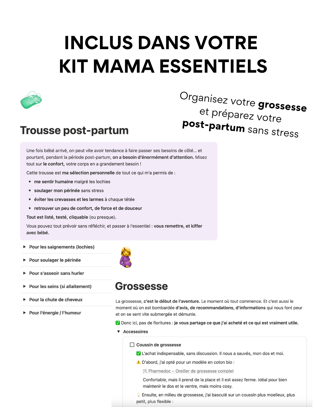 👉 Oui. Ce kit n'est pas seulement là pour vous aider à vous organiser. Il vous épargne des heures de recherche pour trouver LE produit bio / sain, utile ET efficace pour vous et votre bébé.