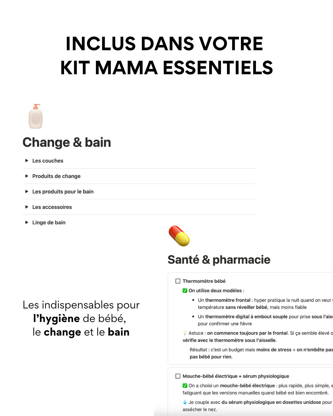➕ Bonus : une fois votre Kit ajouté, il vous appartient, vous pouvez le personnaliser, ajouter vos notes, vos listes, vos photos… bref, l’adapter à votre maternité.
