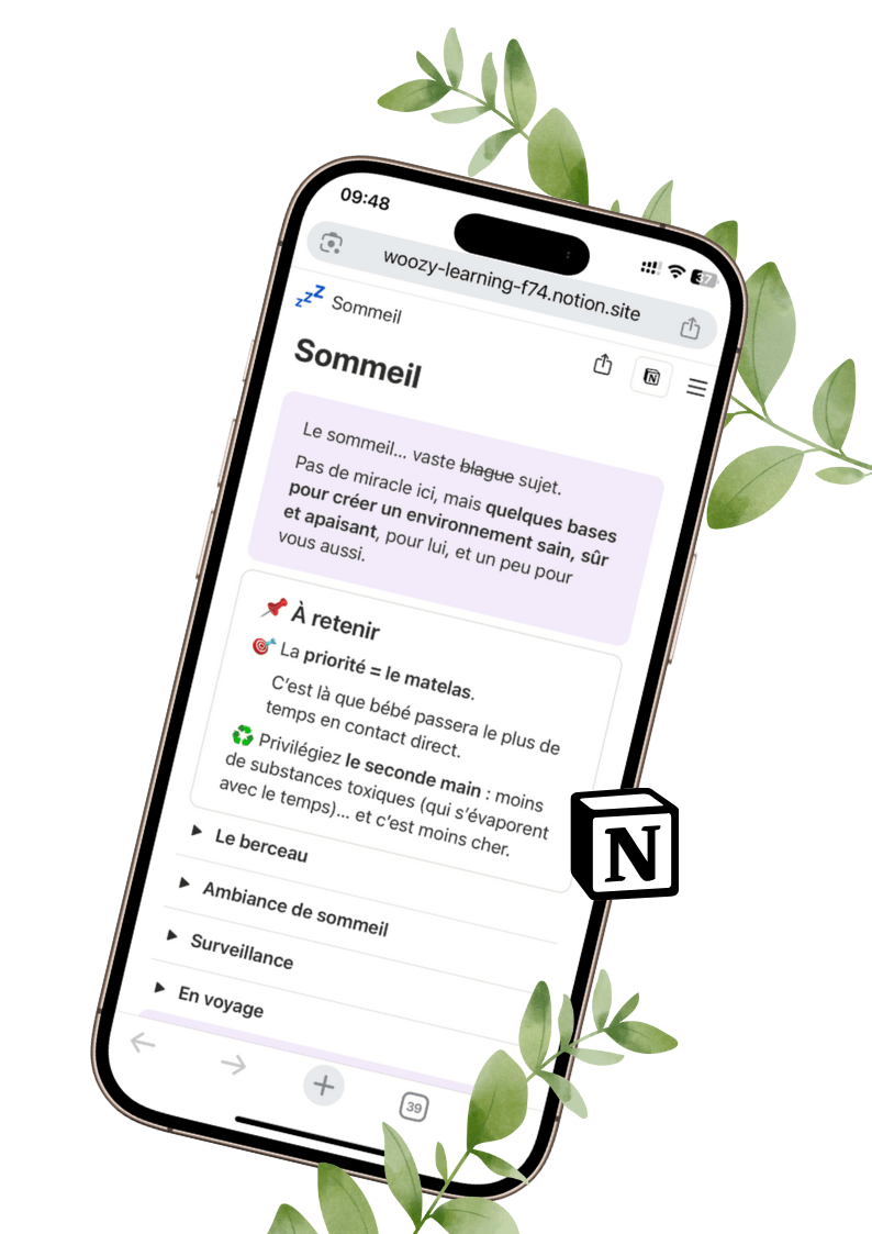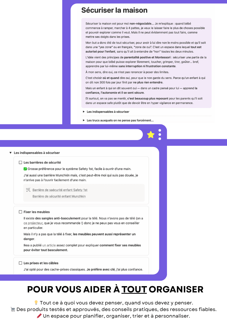 C’est mignon, mais ça ne vous dit pas comment gérer un bébé qui change toutes les semaines, quels produits sont safe pour un bébé qui met TOUT à la bouche, ni comment arrêter de porter seule 100 % de la charge du quotidien.